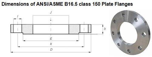 Characteristics of ANSI/ASME B16.5 class 150 Plate Flanges