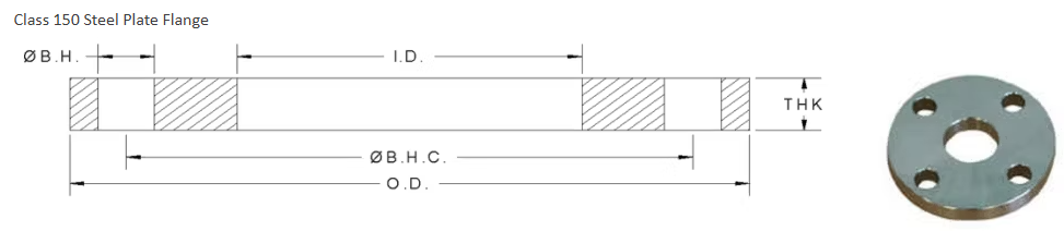 ANSI/ASME B16.5 class 150 Plate Flanges are used in Chemical and petrochemical processing.
